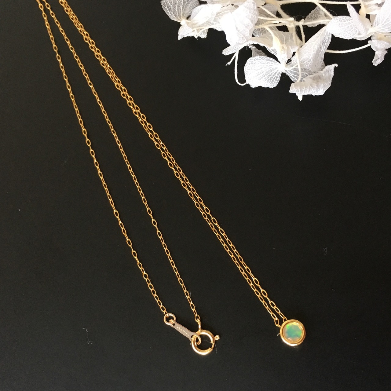 小粒ながら虹色に輝く遊色効果を楽しんで頂けるシンプルなネックレスに仕上がりました。