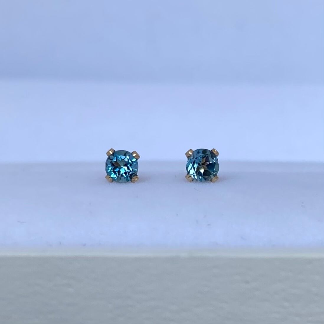 ラウンドブリリアントカットが美しい高品質のロンドンブルートパーズの一粒スタッドピアスです。