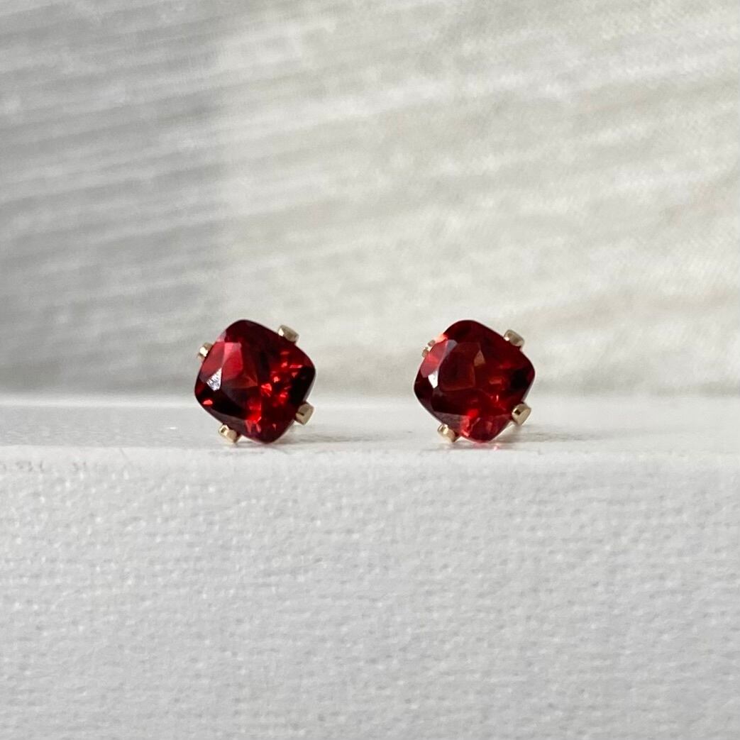 高品質のモザンビークガーネットのスクエアカットを一粒シンプルに使用したポストピアスです。